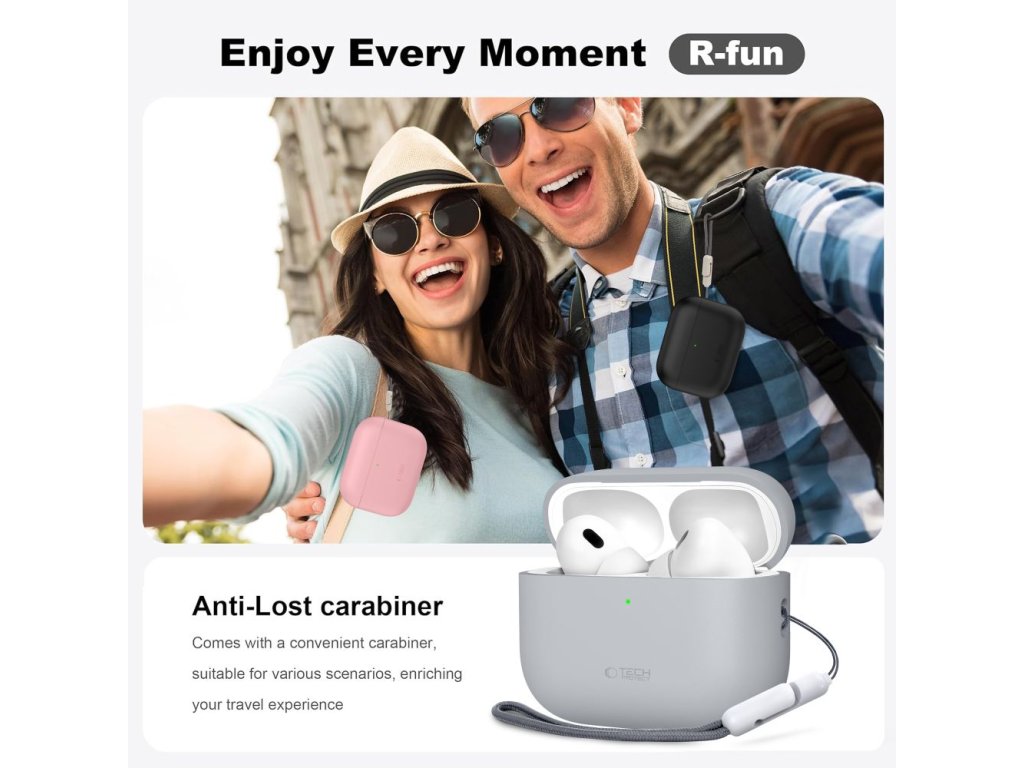 Pouzdro na sluchátka AirPods Pro 3 s poutkem je vyrobeno z tenké gumy a výborně ochrání nabíjecí krabičku před poškrábáním a zničením. Sedí přesně na AirPods Pro 3 a i v nasazeném krytu můžete využívat funkci bezdrátového nabíjení.