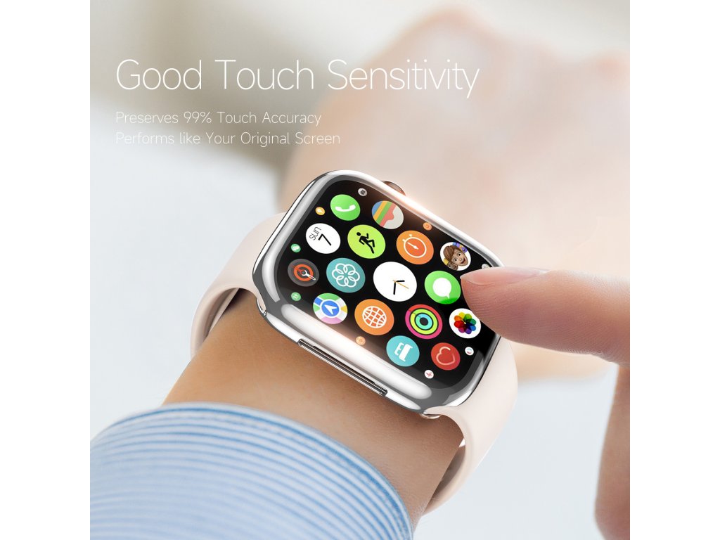 Ochranné sklo na Apple Watch je součástí krytu a tvoří jeden celek. Po nasazení na hodinky ani nepoznáte, že na displeji hodinek je. Ovládání je stejně snadné a hodinky reagují na vaše dotyky bez jakýchkoliv problémů.