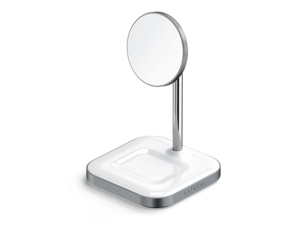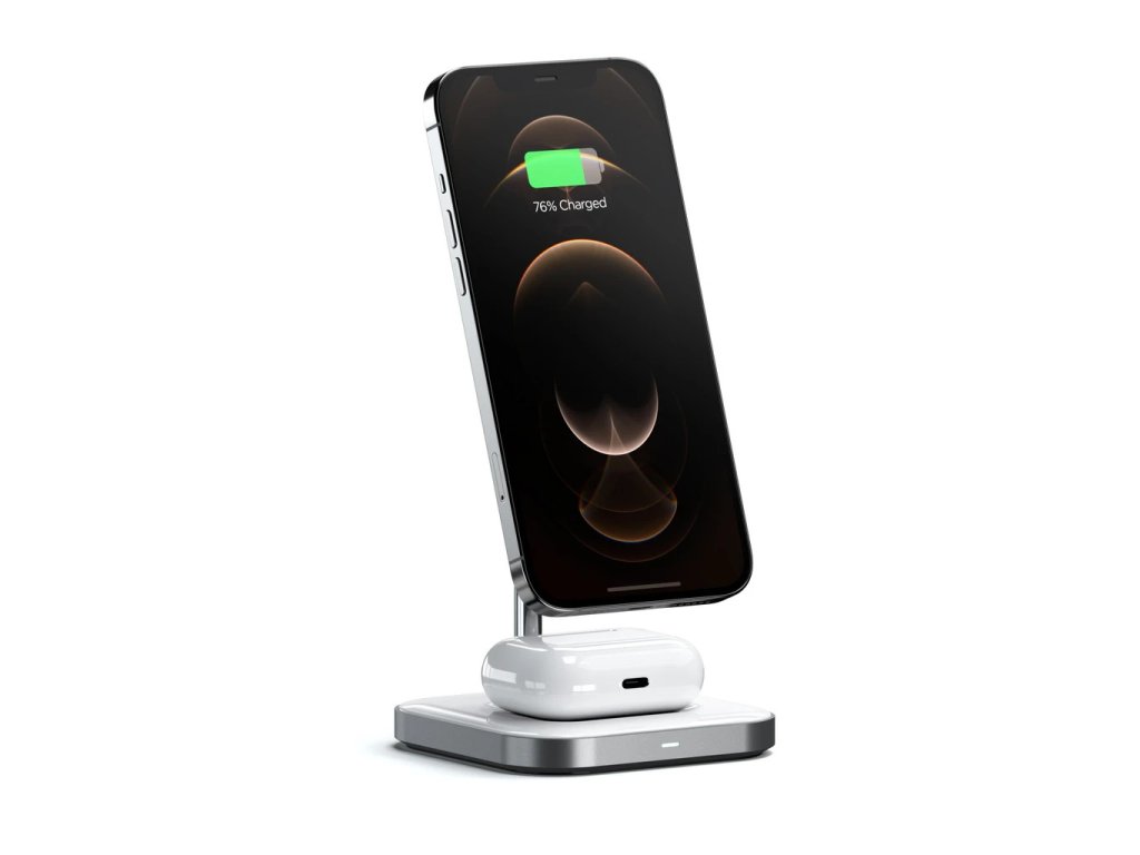Bezdrátová rychlá nabíječka pro iPhone 12 / 13 a AirPods - Satechi, Aluminium 2in1 Magnetic Wireless Charging Stand with MagSafe