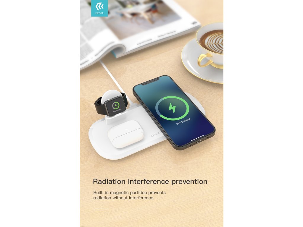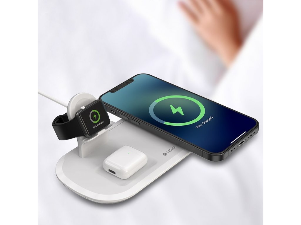 Bezdrátová nabíječka pro iPhone, Apple Watch a AirPods Devia Desktop 3in1 dokáže nabíjet až 3 zařízení současně. Zvládá to navíc rychle a už nebudete muset hledat nabíjecí kabel, který odpovídá danému zařízení.