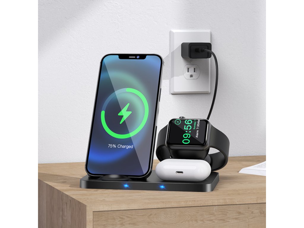Bezdrátová nabíječka pro iPhone, Apple Watch a AirPods Hoco CW33 dokáže nabíjet až 3 zařízení současně. Zvládá to navíc rychle a už nebudete muset hledat nabíjecí kabel, který odpovídá danému zařízení.