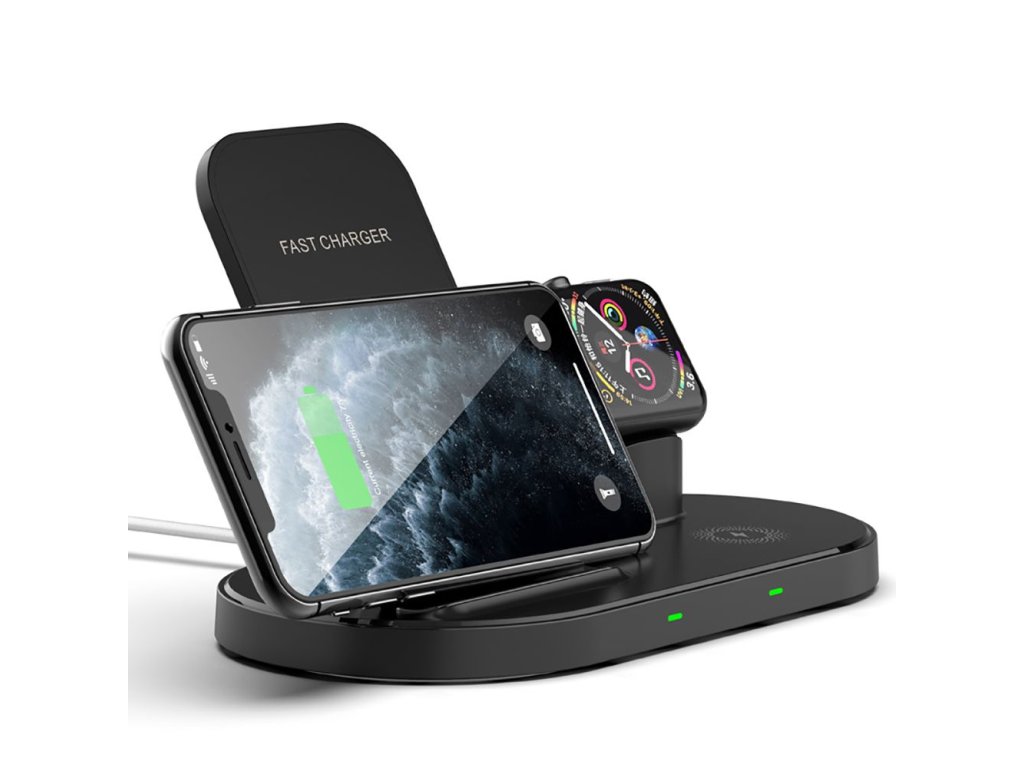 Bezdrátová nabíječka pro iPhone, Apple Watch a AirPods Tech-Protect W55 nabíjí až 3 zařízení najednou. Spolehlivě a rychle tak může najednou nebo i samostatně obsloužit telefon, sluchátka i chytré hodinky.