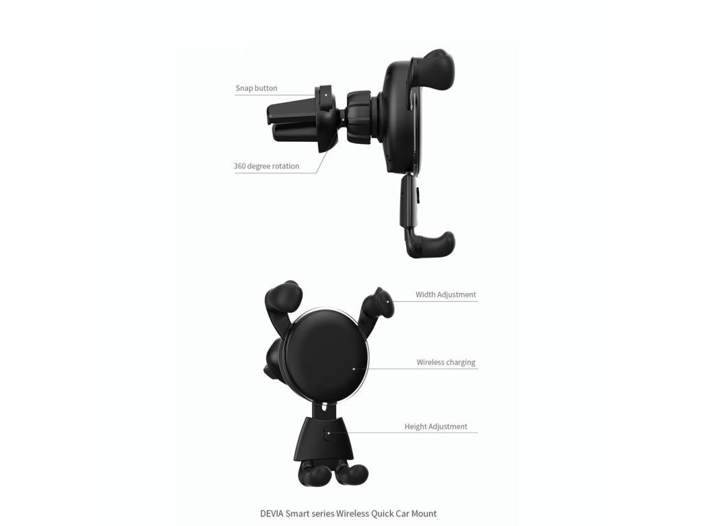Bezdrátová rychlá nabíječka a držák do auta pro iPhone DEVIA slouží jako multifunkční produkt, kterým si iPhone nabijete i uchytíte v autě. Nemusíte zapojovat kabel pro nabití telefonu, a i v autě si užijete bezdrátové nabíjení. Držák je vhodný pro všechny iPhony s podporou bezdrátového nabíjení.