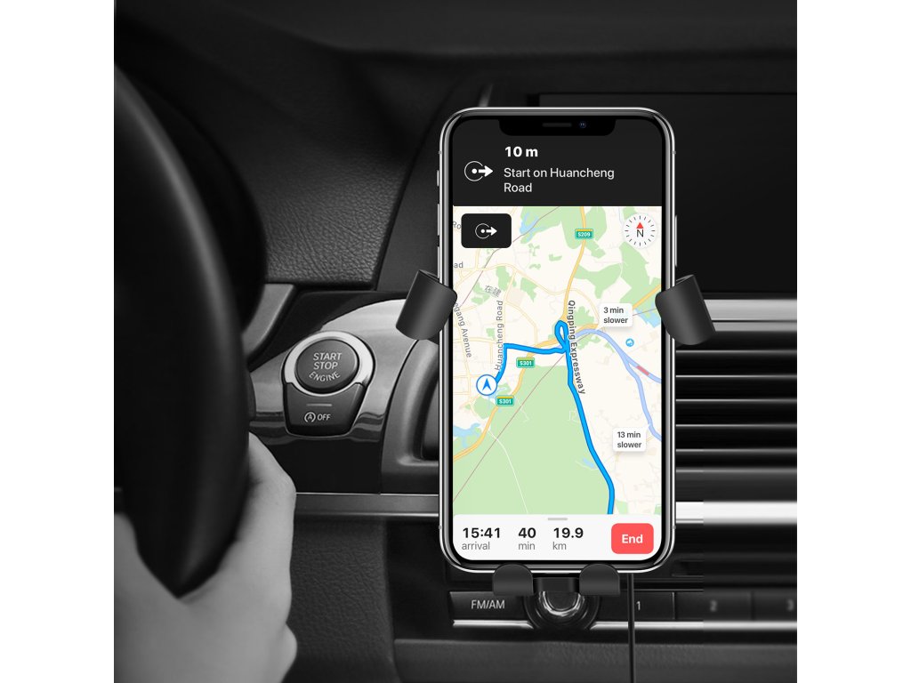 Držák do auta lehce připnete do ventilační mřížky a po vložení telefonu se jeho úchyty automaticky přizpůsobí velikosti zařízení.