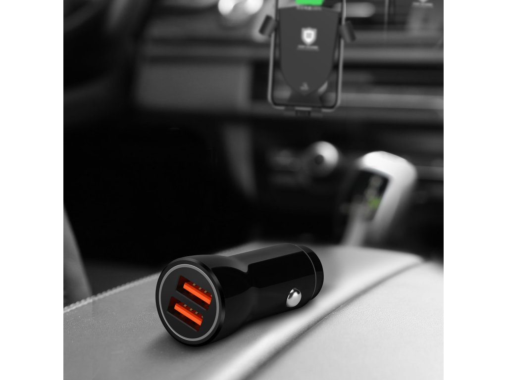K tomu všemu dostanete v balení i napájecí adaptér do auta s podporou rychlého nabíjení Quick Charge 3.0. Na sobě má rovnou 2 USB výstupy, takže můžete nabíjet jeden telefon bezdrátově v držáku a druhý drátově.