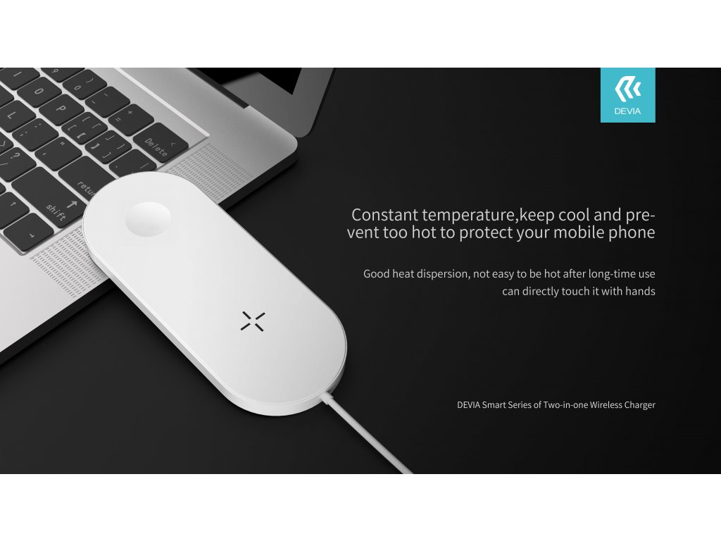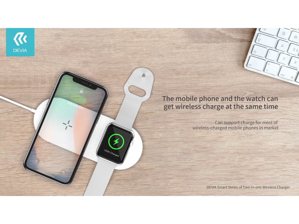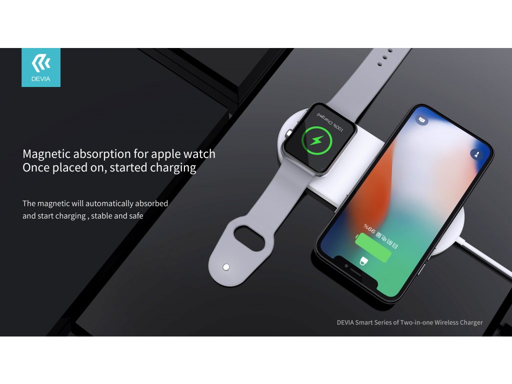 Bezdrátová nabíječka pro iPhone a Apple Watch DEVIA je každodenním pomocníkem při nabíjení obou zařízení současně. Nemusíte se starat o spoustu kabelů a na jednom místě provedete nabití elegantně a jednoduše.