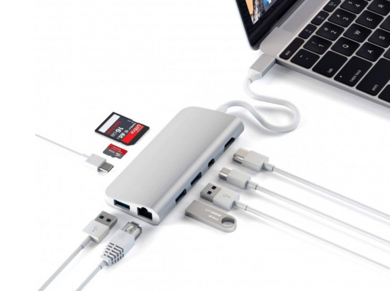 Vrcholným a maximálně multifunkčním řešením pak může být USB-C adaptér Satechi Multimedia. Díky němu rozšíříte jediný USB-C port na počítači o spoustu dalších. Do nich pak lze připojit HDMI nebo DisplayPort monitor, napájecí kabel, síťový Ethernet kabel, zařízení s klasickým USB nebo samozřejmě i různé paměťové karty. Jeho cena je 2 599 Kč.