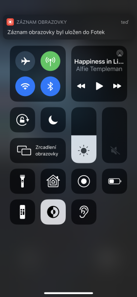 Po nastavení se vám v ovládacím centru objeví ikona s tečkou uprostřed a jakmile na ní kliknete, po odpočítání 3 sekund se začne nahrávat obrazovka iPhonu. Zčervená a začne se zaznamenávat. Po dalším stisku ikony se nahrávání zastaví a objeví se informace o tom, že nahrávka se uložila do aplikace Fotky.