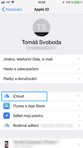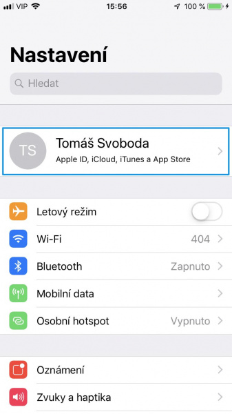 - Jděte do Nastavení a klepněte nahoře na své jméno