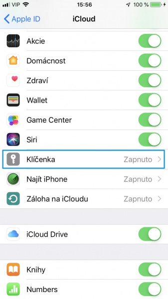 - Pak na položku iCloud a Klíčenka, ta musí být zapnutá