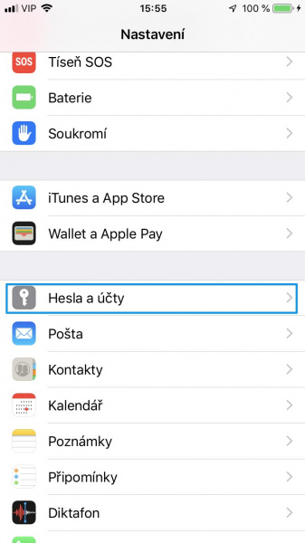- Otevřete si Nastavení, sjeďte dolů a vyberte Hesla a účty