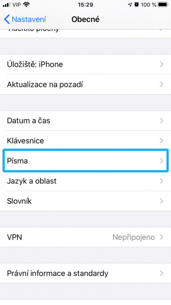 - Jděte v iPhonu nebo iPadu do Nastavení - Obecné - Písma