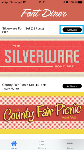 - Po otevření aplikace můžete aktivovat 23 fontů zdarma a další za drobný poplatek