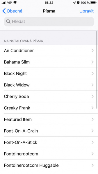 - Když se vrátíte do Nastavení - Obecné - Písma, uvidíte všechny nové fonty