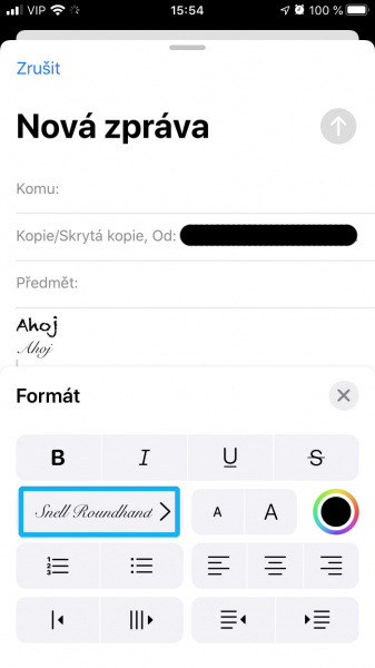 Teď už zbývá jen novinku vyzkoušet. Otevřete si například aplikaci Mail a než začnete psát text, vyberte z lišty nad klávesnicí ikony s písmeny „Aa“ a v dialogu požadovaný font. Na výběr máte všechny dosavadní fonty textu a nově i dalších 23 nových.