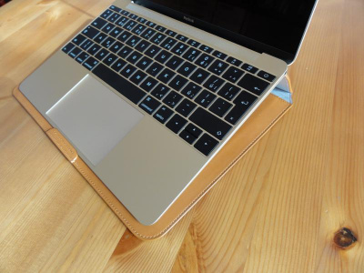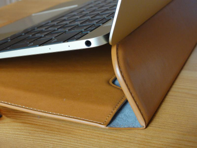 Kožený obal / pouzdro pro MacBook od společnosti SLG ale nabízí něco, co byste jinde hledali marně. 12palcový MacBook nedisponuje aktivním chlazením, a tak může trpět častým zahříváním. Toto pouzdro však obsahuje zarážku, o kterou můžete zapřít spodní část MacBooku a tím jej použít jako dokovací stanici. Díky pevnému víku pak s takto usazeným strojem můžete velice pohodlně pracovat a to i s lepším zdvihem klávesnice.
