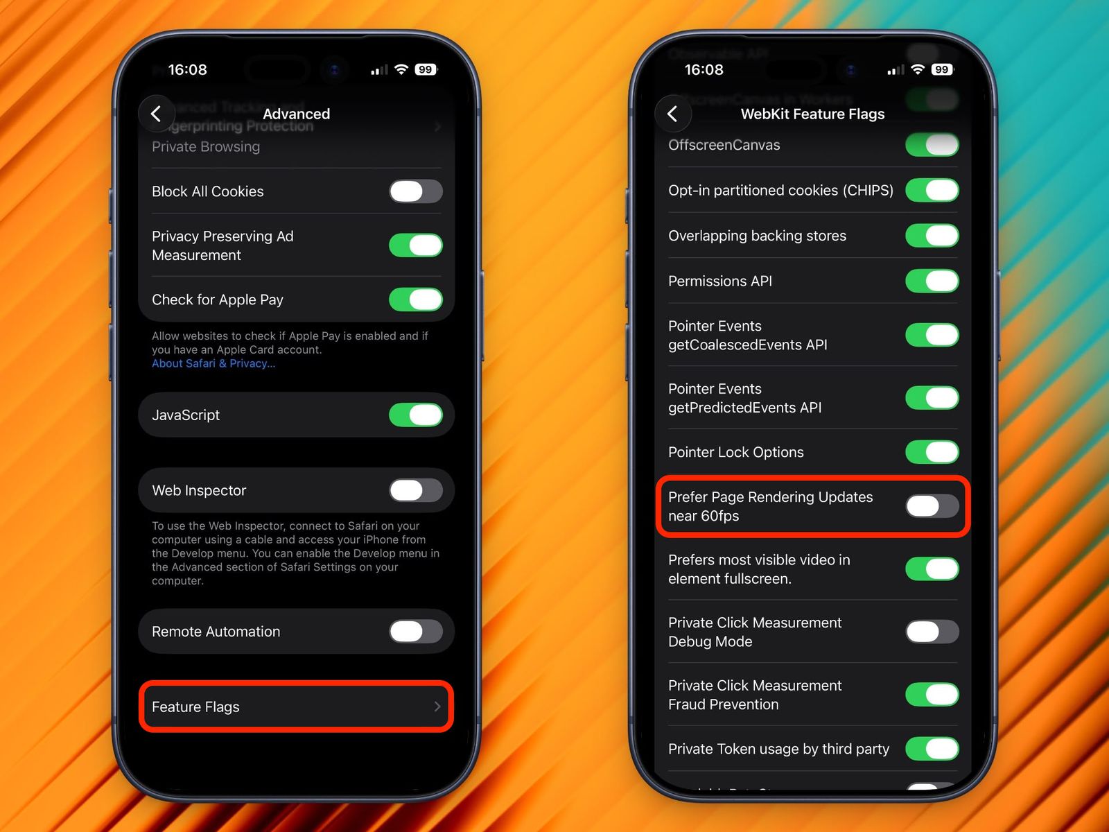 Na iPhone a iPad je funkce ukrytá v interním nastavení Safari nazývaném Feature Flags.