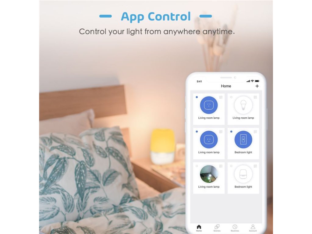 - umožňuje dálkové zapnutí/vypnutí žárovky pomocí aplikace Meross