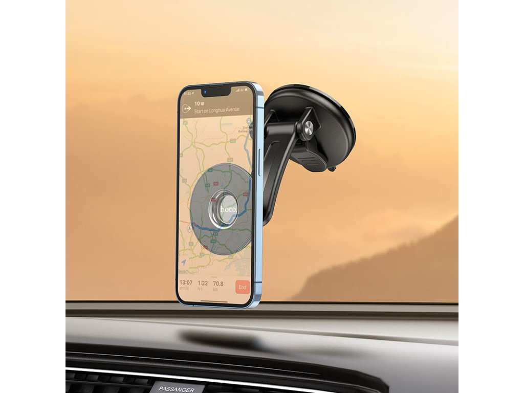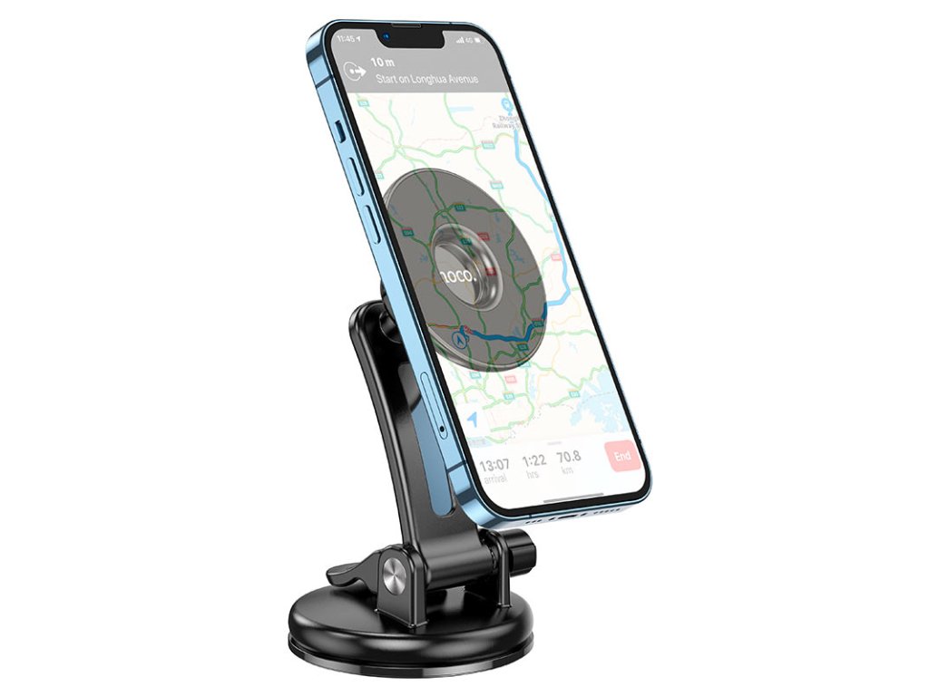 Magnetický držák do auta váží jen 85 gramů, což je velmi málo a snadno ho tak můžete přemístit na jiné místo v autě. Přesto ale pevně udrží zařízení na jednom místě. Lehce ho také lze odebrat díky snadnému mechanismu. K dispozici je možnost umístění na palubní desku, čelní sklo nebo jiný rovný povrch. Přísavka se malou páčkou odjistí a opětovným pootočením zajistí na daném místě. Po omytí čistou vodou a usušení lze znovu použít.