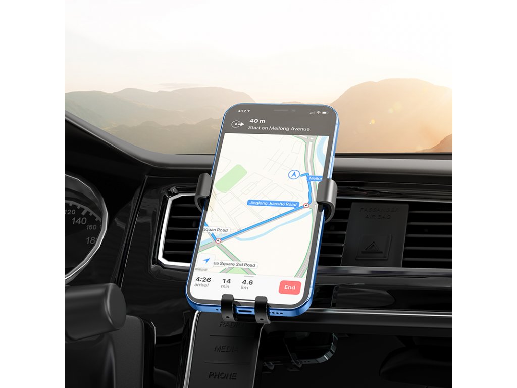 Univerzální držák do mřížky ventilace HOCO CA92 pevně udrží váš telefon na ventilaci auta a vy nemusíte brát za jízdy přístroj do ruky. Funguje s většinou chytrých telefonů.
