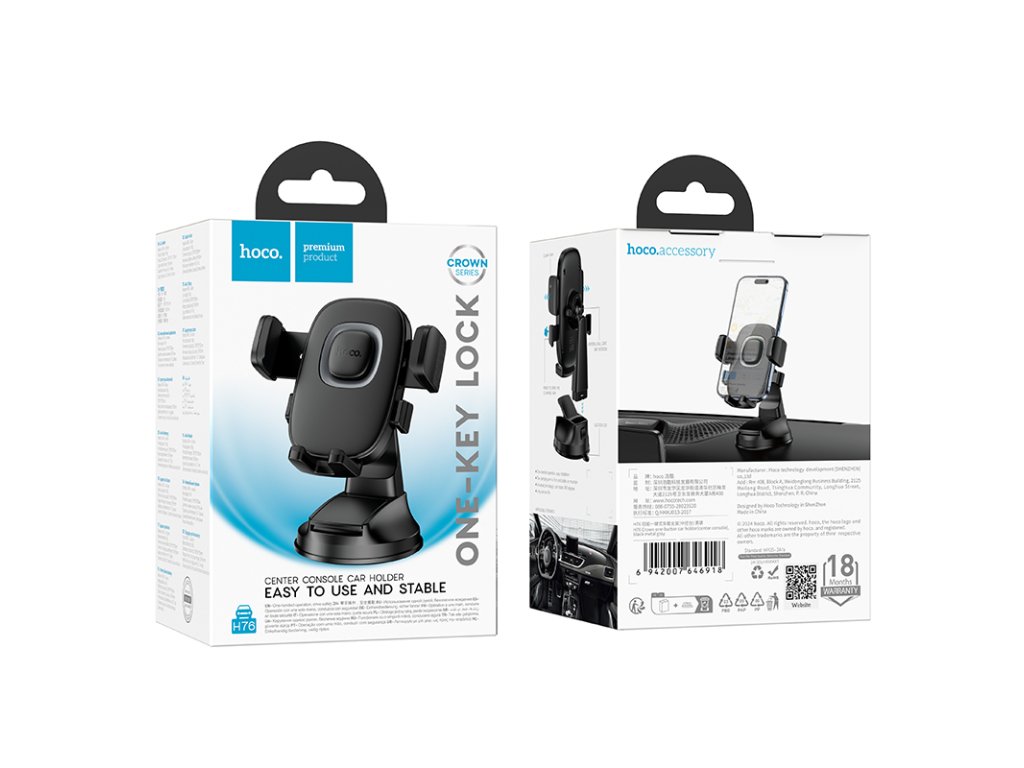 Univerzální držák mobilu HOCO H76 Crown je praktický a spolehlivý držák určený pro bezpečné upevnění iPhonů a dalších chytrých telefonů do auta. Díky nastavitelné konstrukci a univerzálním rozměrům se snadno přizpůsobí různým velikostem zařízení, poskytuje pevné uchopení a pohodlný přístup během jízdy. Držák je vybaven silnou přísavkou, což zajišťuje stabilitu i při jízdě po nerovném terénu. Elegantní design a jednoduchá instalace dělají z tohoto produktu ideálního pomocníka pro bezpečné používání telefonu během řízení.