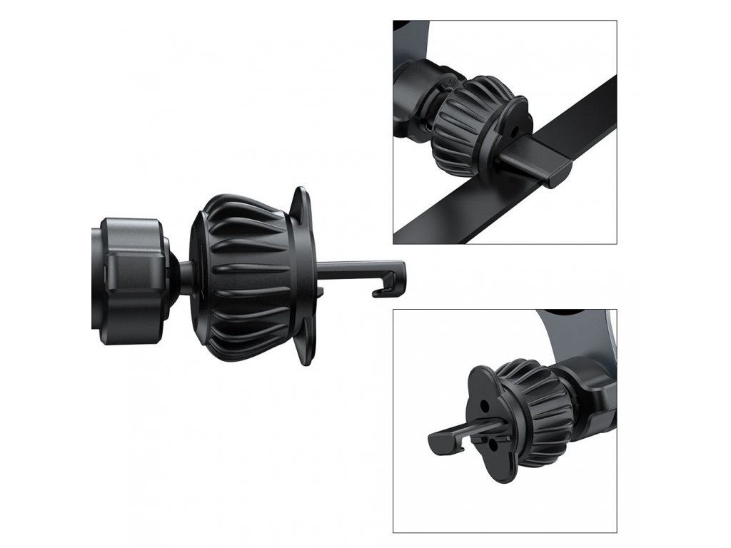 Magnetický držák do auta je lehký a připevní se na ventilační mřížku auta. Pevně udrží zařízení na jednom místě. Zobáček se zasune do mřížky a dolní páčkou vše zajistíte. Díky tomuto zabezpečení nemůže z mřížky ani za divoké jízdy vypadnout. Telefon v něm lze používat na výšku i na šířku a polohovatelný aretační šroub zajistí, že si displej iPhonu natočíte ideálně k sobě a uvidíte na něj.