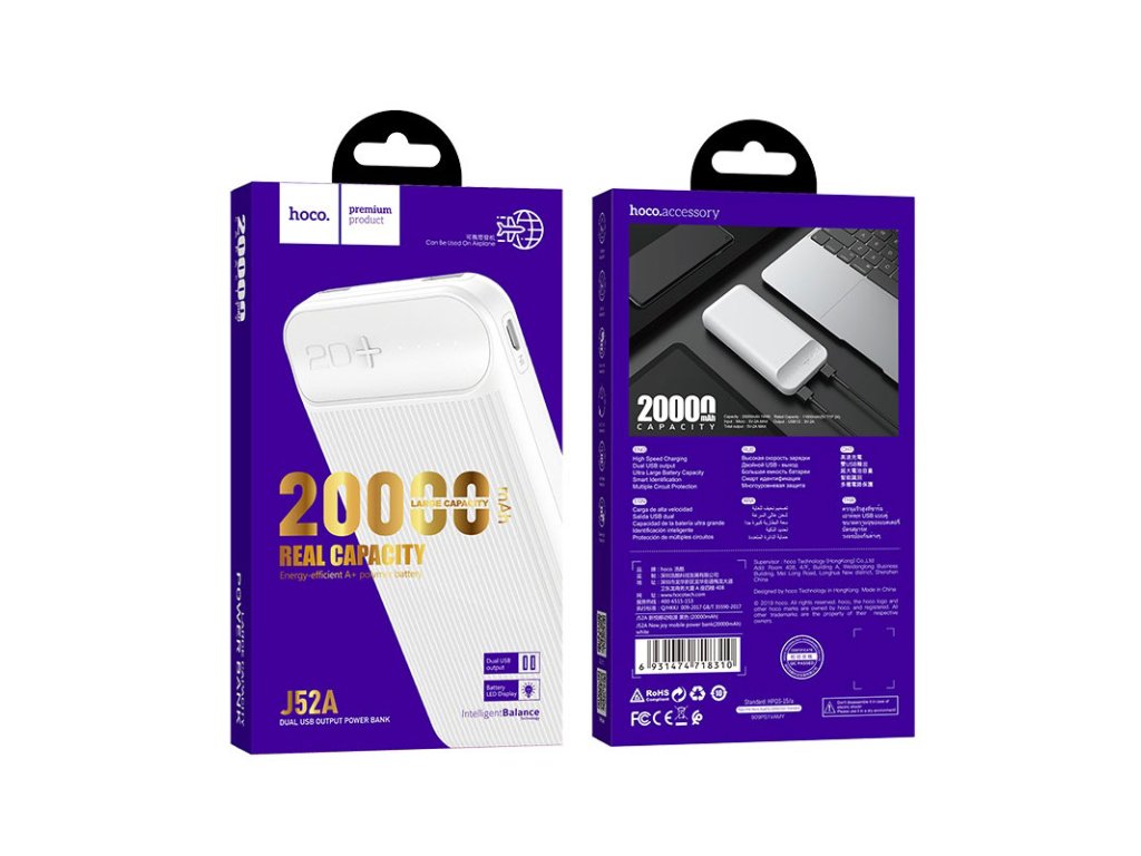 Externí baterie / powerbanka - HOCO, J52A NewJoy 20000mAh White