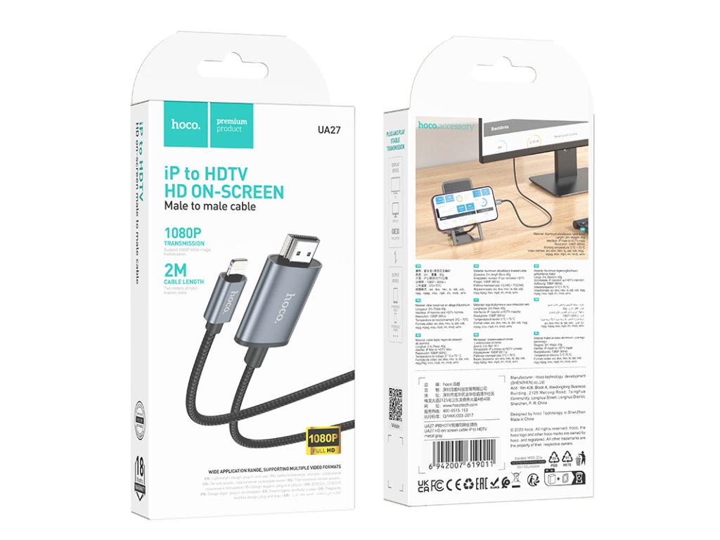 Adaptér pro iPhone a iPad Hoco UA27 je velmi užitečným, ale jednoduchým příslušenstvím. Dokáže totiž poslat obraz z iOS zařízení do vaší televize, monitoru nebo projektoru. Podporuje Full HD rozlišení a hliníkové provedení s nylonovým opletením zajistí dlouhou životnost.