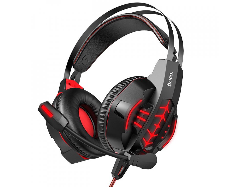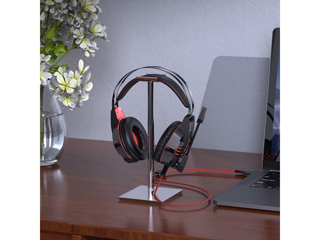 Herní sluchátka s mikrofonem Hoco W102 jsou velká a velmi pohodlná sluchátka pro připojení k počítači pomocí USB nebo 3,5mm jack konektoru. S integrovaným mikrofonem perfektně poslouží jako headset a herní večery. Efekt pak přináší barevné LED osvětlení.
