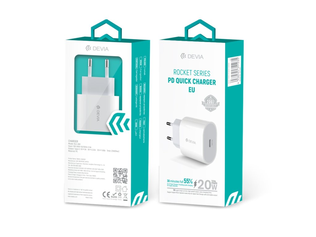 Rychlý USB-C adaptér do sítě - Devia, Rocket PD20W