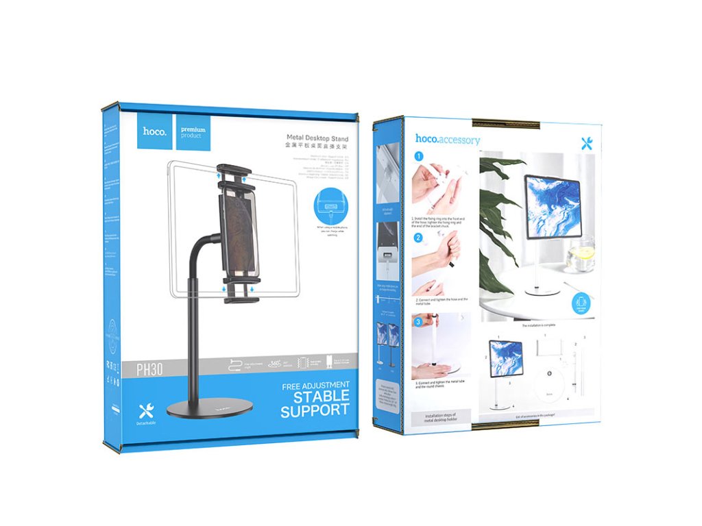 Stojánek pro iPhone a iPad Hoco PH30 je bytelným příslušenstvím, který udrží vaše chytré zařízení ve zvolené poloze. Díky tomu uvidíte perfektně na displej, aniž byste telefon drželi v ruce. Ocelová konstrukce vydrží věky a vypadá velmi dobře.