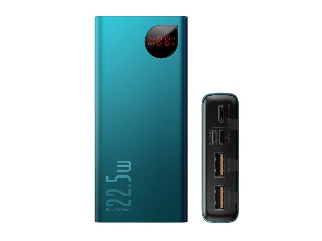 Externí baterie Baseus Adaman se může pochlubit vysokým nabíjecím výkonem 22,5 W. Podporuje protokoly Huawei SuperCharge, PD 3.0 a QC 3.0 a najdete na ní celkem 5 portů. Jedno USB-C, Lightning, MicroUSB a dva klasické USB porty.
