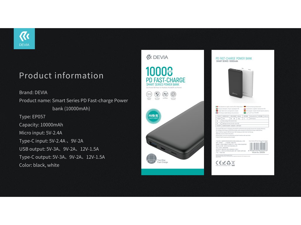 Externí baterie / powerbanka - Devia, Smart PD 10000mah Black
