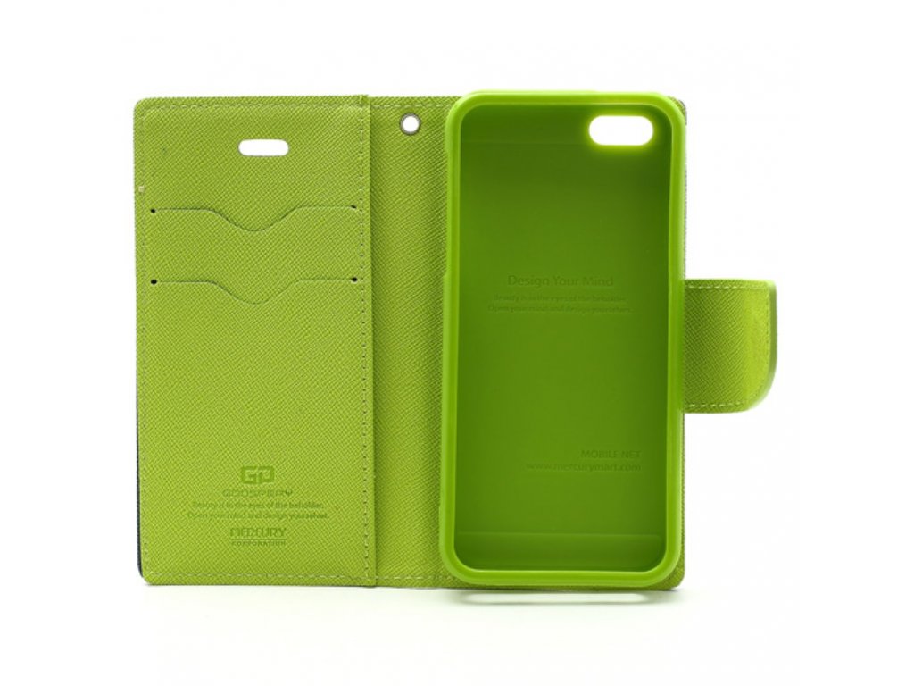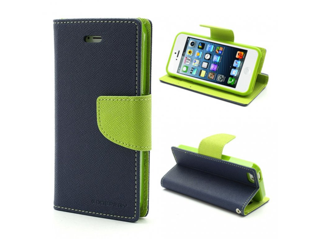 Pouzdro / kryt pro Apple iPhone 5 / 5S / SE - Mercury, Fancy Diary Navy/Lime