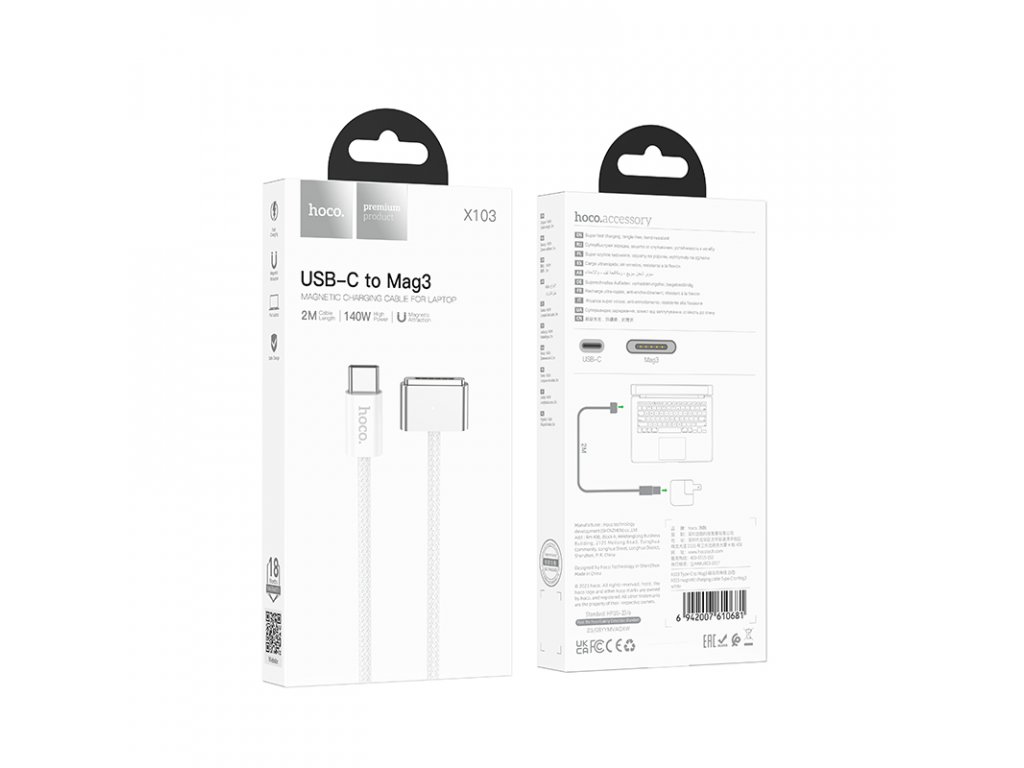 Nabíjecí kabel USB-C to MagSafe 3 Hoco X103 využijete k nabíjení MacBooků Pro a Air. Díky magnetické funkci MagSafe rychle a bezpečně dobijete svůj Apple notebook a dvoumetrová délka zajistí, že dosáhne k nabíječce i daleko pod pracovní stůl.