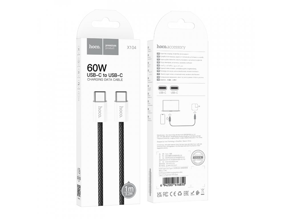 Kabel USB-C to USB-C - Hoco, X104 Source 60W/3A 100cm Black