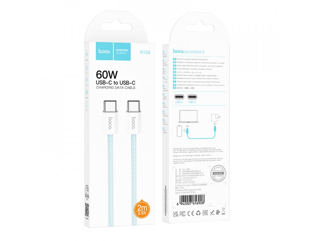 Kabel USB-C to USB-C - Hoco, X104 Source 60W/3A 200cm Blue