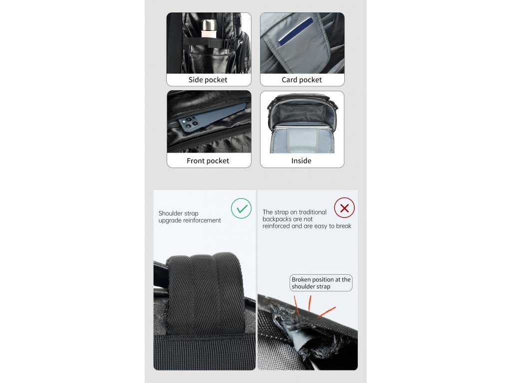 Městský batoh Tigernu T-B9061 je velkým batohem, který obsahuje jednu obří kapsu a mnoho dalších menších pro dokonalou organizaci vašich věcí. Dovnitř se vejde 15,6palcový počítač a vnější materiál odolá dešti. Pohodlné nošení zajistí paměťová pěna a prodyšná látka na zádech.