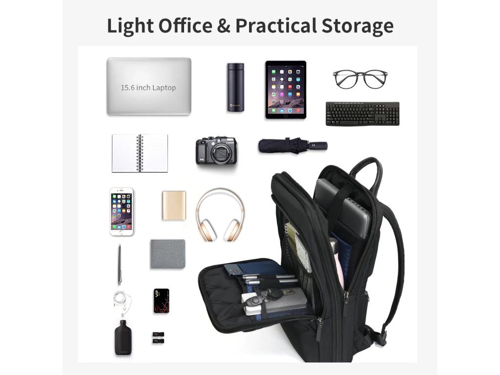 Do batohu vložíte notebook o velikosti až 15,6 palců. Kromě něj si můžete bezpečně uložit sešity, telefon, peněženku a další příslušenství jako je například myš nebo powerbanka.