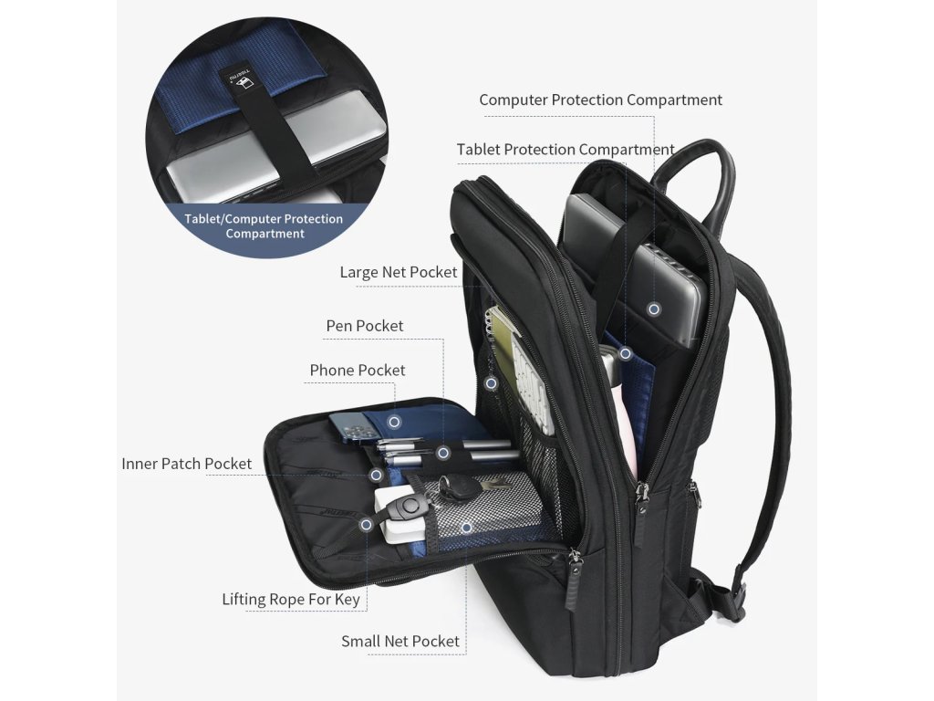 Městský batoh Tigernu T-B3305A je velmi praktické zavazadlo, do kterého pohodlně vložíte svůj notebook do velikosti úhlopříčky 15,6 ″, příslušenství a díky chytrým vychytávkám si batoh určitě oblíbíte.