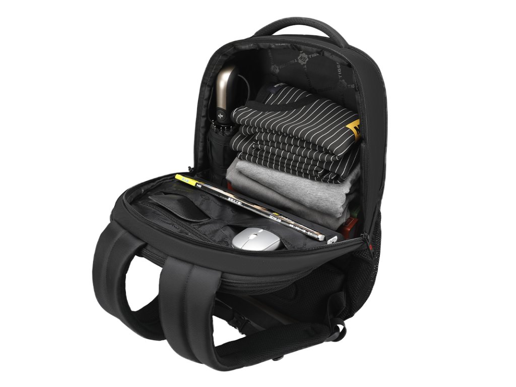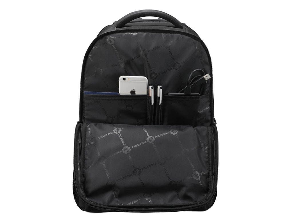Batoh pro notebook Tigernu nabízí dostatek prostoru na transport vašeho pracovního zařízení s potřebným příslušenstvím. Přes svou stále kompaktní velikost je vnitřní uspořádání šikovně řešeno a nabídne několik kapes. Zadní slouží k bezpečnému uložení počítače, kde se nachází i nárazuvzdorný panel, takže notebook bude neustále jako v bavlnce. Prostřední velká kapsa pak nabídne místo na nabíječku, sluchátka, sešity nebo další doplňky. Přední kapsy jsou určeny pro malé předměty, které rychle z batohu vyndáte.
