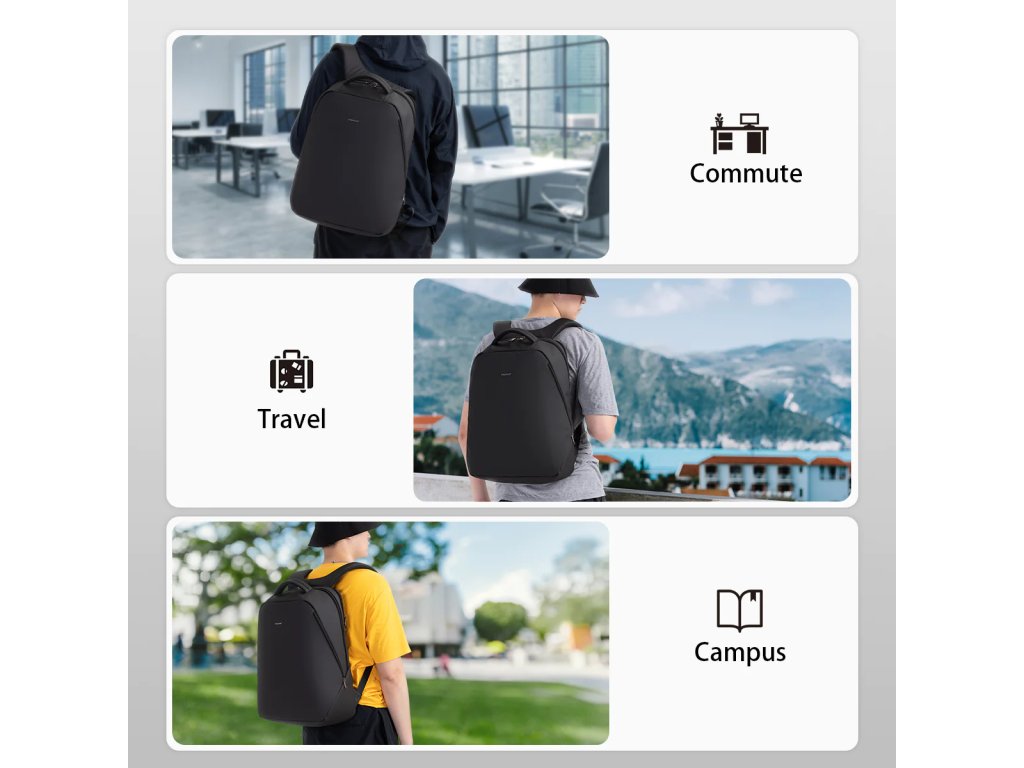 Městský batoh Tigernu T-B3164TPU je velkým zavazadlem, do kterého se vejde vše, co budete potřebovat, ale tělem klame. Pojme velký notebook do úhlopříčky až 17 palců a množství kapes, přihrádek a šikovných vychytávek se postará o vše ostatní.