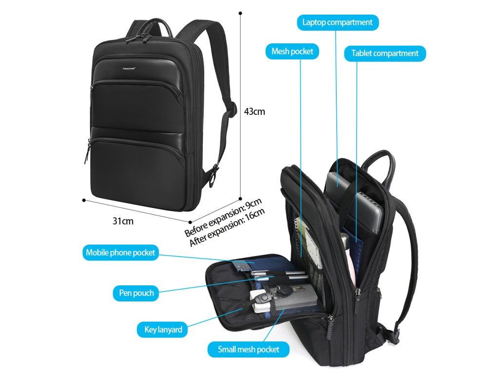 Městský batoh Tigernu T-B9121 je velmi praktické zavazadlo, do kterého pohodlně vložíte svůj notebook do velikosti úhlopříčky 17 ″, příslušenství a díky chytrým vychytávkám si batoh určitě oblíbíte.