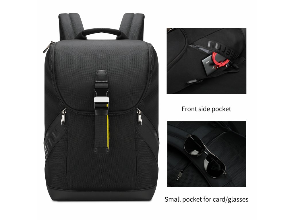 Kromě obyčejných kapes a přihrádek batoh nabídne integrovaný rychlý USB port. Ten slouží jako propojovací kabel. Můžete tak mít uvnitř batohu powerbanku a kabelem k ní mít připojený telefon, který budete používat. Port podporuje rychlé nabíjení až do 4.0 A, takže budete mít dobito během chvilky.