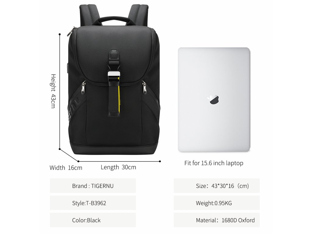 Městský batoh Tigernu T-B3962 je velmi elegantním batohem, který ocení dámy i pánové. Vnější materiál je nepromokavý a do zadní části se vejde notebook až do velikosti úhlopříčky 15,6 ″. Kromě toho je na boku přístupný USB port pro rychlé dobití vašeho telefonu nebo tabletu.