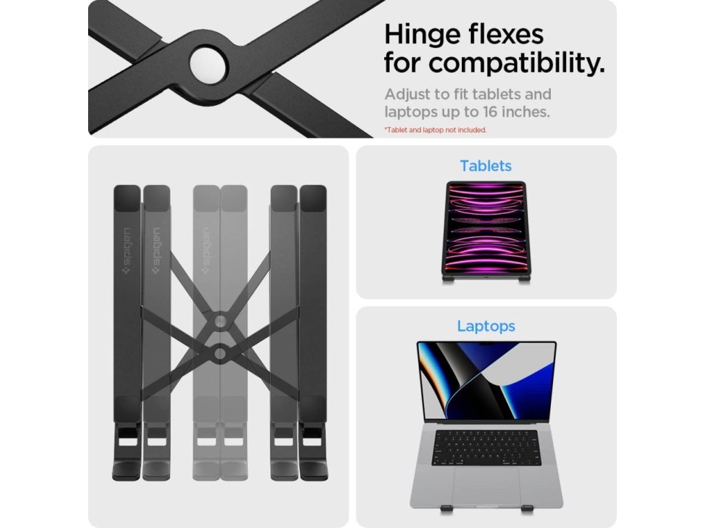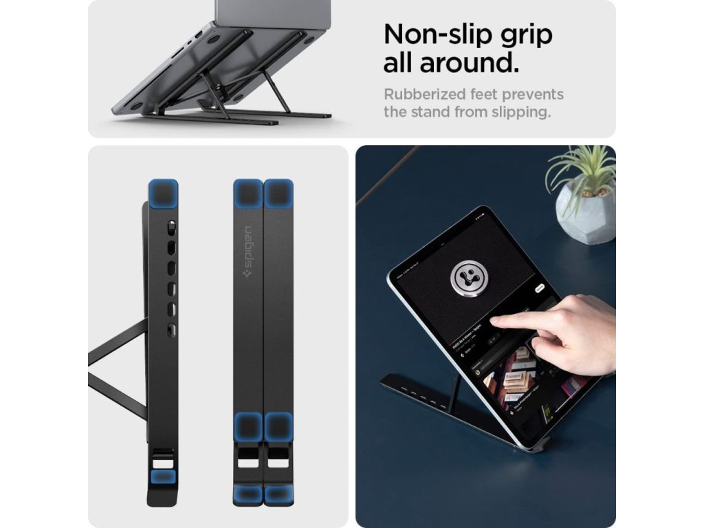 Stojan pro notebook Spigen LD201 je hliníkovým podstavcem pro bezpečné a polohovatelné uložení vašeho notebooku nebo MacBooku. Získáte tak lepší ergonomii použití a po složení ho jednoduše můžete vzít všude s sebou.