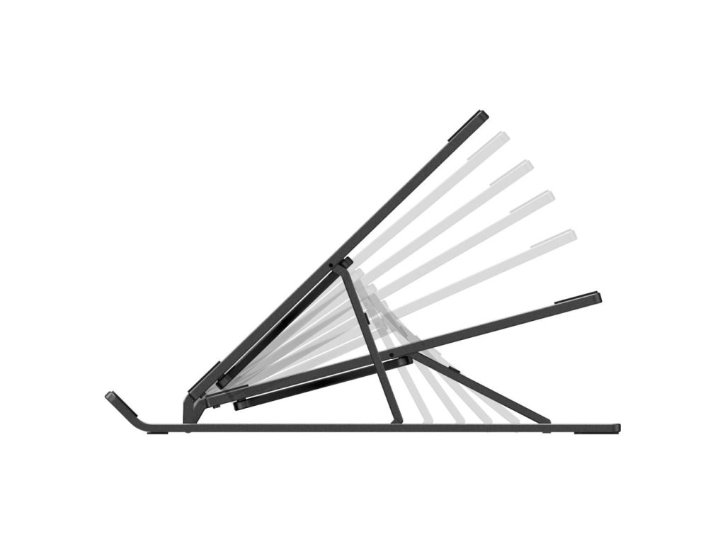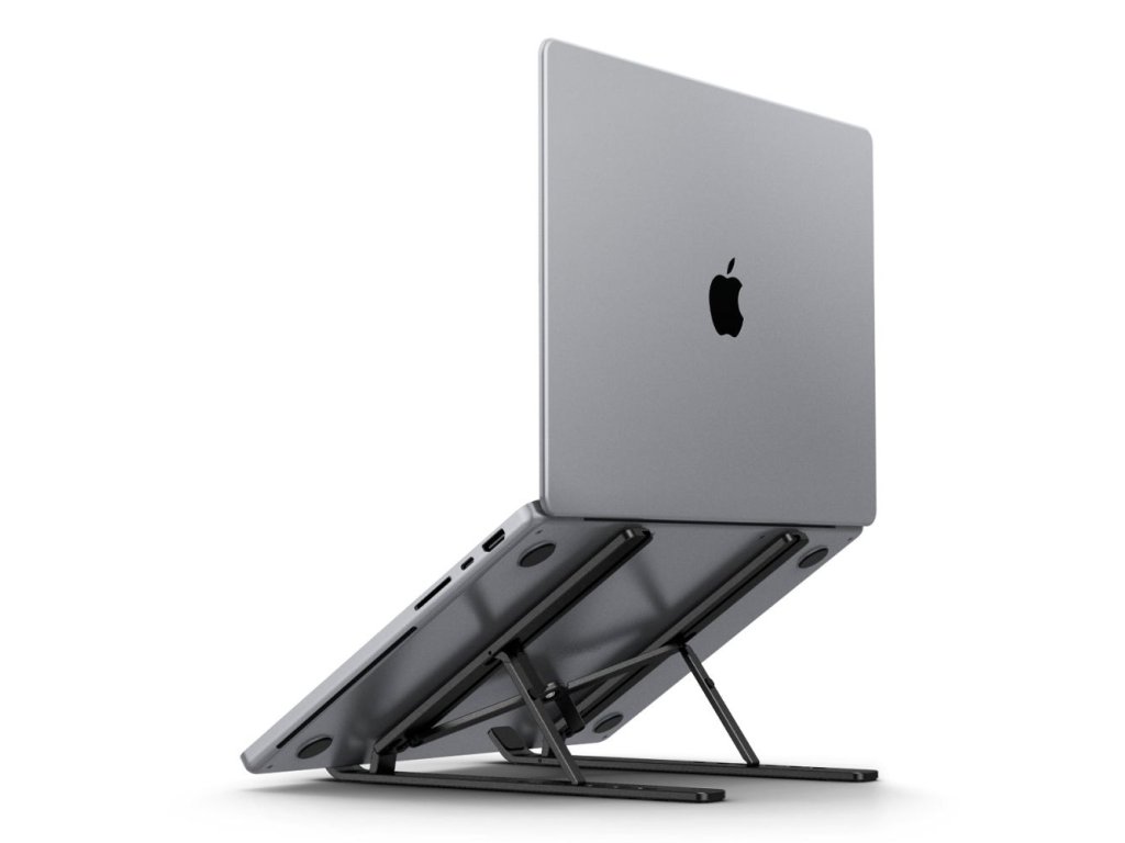 Stojan na MacBook poskytuje větší pohodlí a zlepšuje chlazení počítače. Příslušenství má lehkou hliníkovou konstrukci s možností skládání a nastavení. To vám umožní zvednout zařízení v až 6 různých úhlech, což se projeví ve vylepšené ergonomii a zdravé poloze při práci na notebooku.