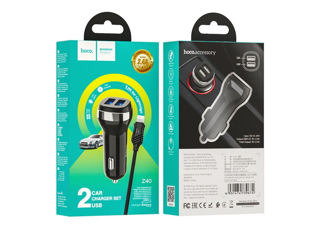 Auto-nabíječka pro iPhone a iPad - Hoco, Z40 Superior + Lightning kabel