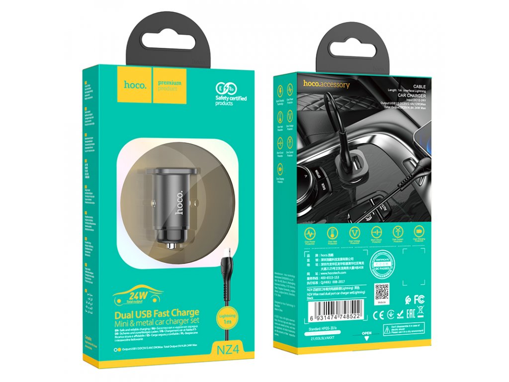 Auto-nabíječka pro iPhone a iPad Hoco NZ4 disponuje dvojicí USB portů, kterými je schopna rychle dobít připojená zařízení, a to výkonem až 12 W. Oceníte také její malé rozměry a Lightning kabel v balení.