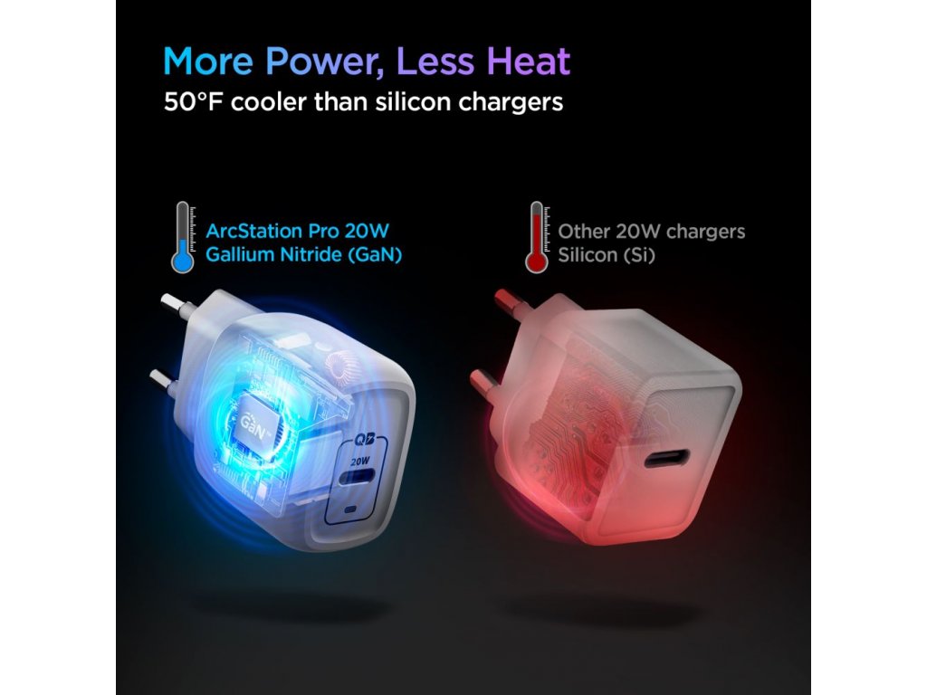 Adaptér pro iPhone a další telefony nebo tablety je vyroben z odolného plastu a materiálů, které zpomalují hoření. V případě požáru se tedy oheň nebude šířit tak rychle. Pro malé rozměry a dvoukolíkové provedení se hodí i do těsných zásuvek. Váha je také velmi nízká a moderní GaN technologie zajišťuje i menší zahřívání adaptéru při maximální zátěži.